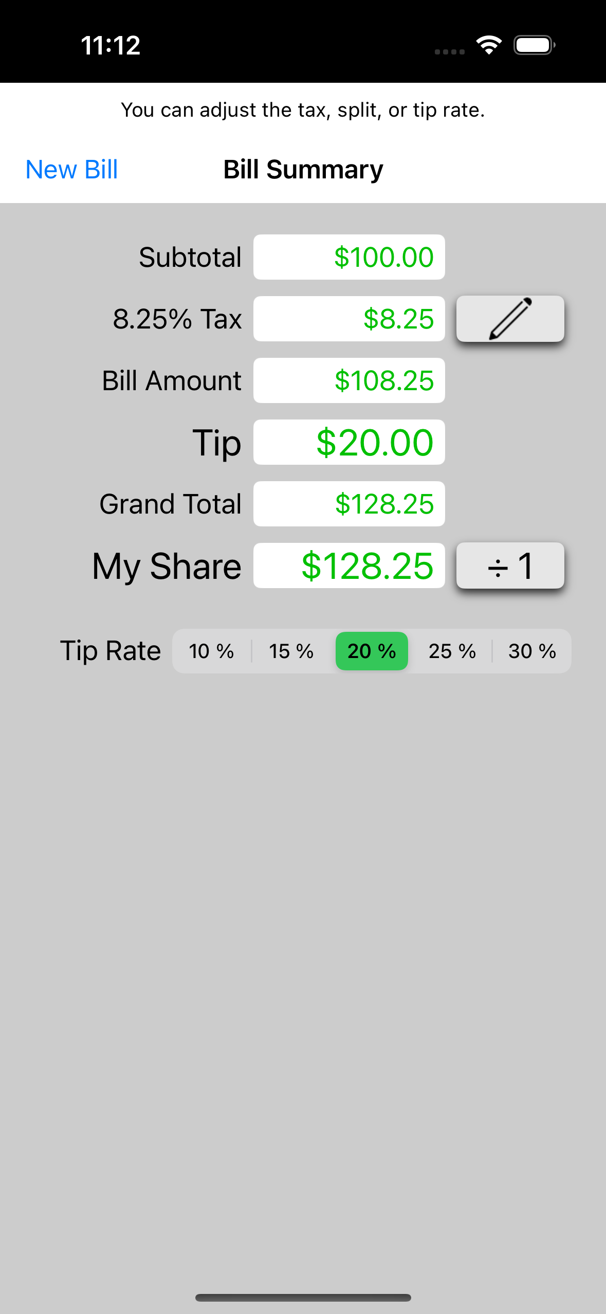 This iPhone app calculates the tip and grand total from information in your restaurant bill. It minimizes the number of taps to get a result.